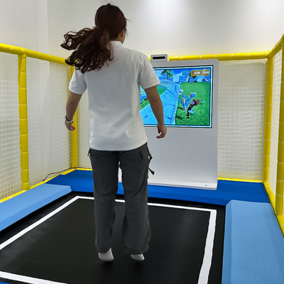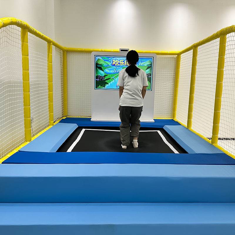Onze trampoline-alles-in-één machine is een grootschalig interactief systeem dat een beeldscherm combineert met een trampoline, waardoor interactieve technologie perfect wordt geïntegreerd met trampolines en trampoline-spellen een gevoel van technologie krijgen. Ondertussen kunnen gebruikers deelnemen aan rollenspellen en uitdagende levels, waardoor het uitdagender wordt en hun interesse in sport wordt gestimuleerd. Er zijn momenteel zes interactieve spellen die zeer populair zijn in de markt.